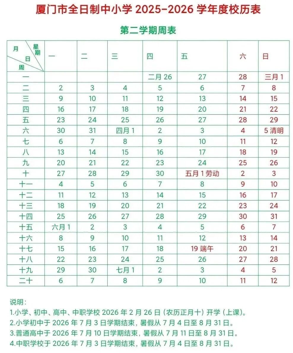 以厦门校历为例